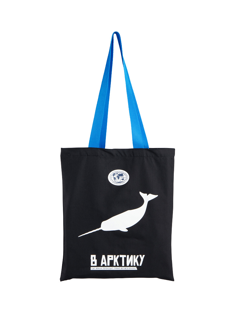 Кто сказал, что единорогов не существует? Посмотрите на нарвала! Удивительное арктическое животное уже приплыло на вашу новую любимую сумочку! Удобный тканевый шоппер с ярко-синими ручками прослужит долго и порадует отменным качеством материала.