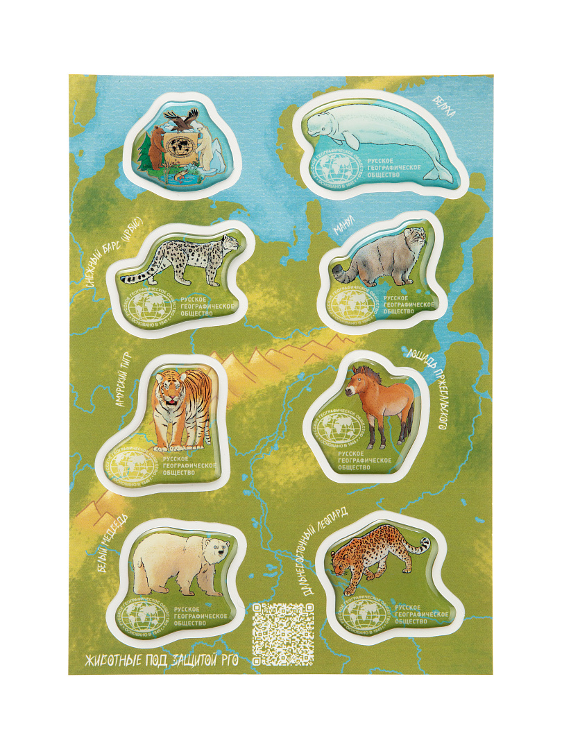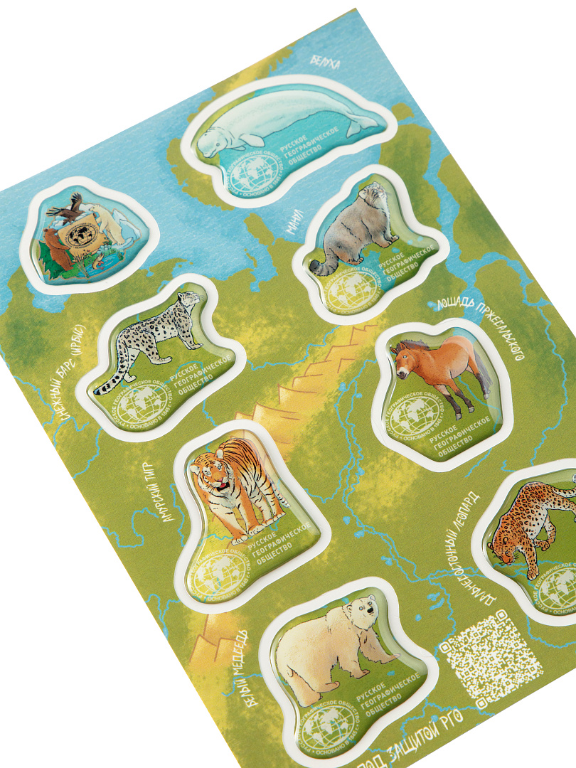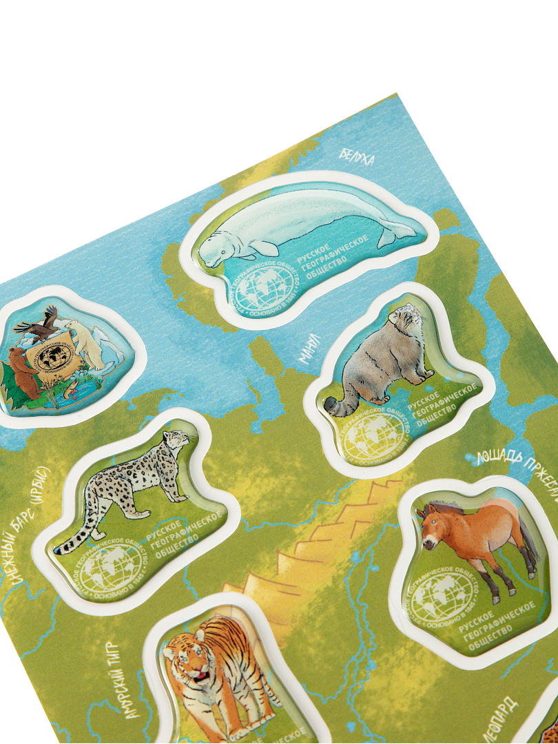Знакомьтесь: компания очаровательных зверей, находящихся под защитой Русского географического общества! Милые животные порадуют детей и взрослых, с удовольствием поселясь на ваших гаджетах и блокнотах. Стикеры плотные и акриловые, долго сохраняют свой вид, не отрываются и не стираются.