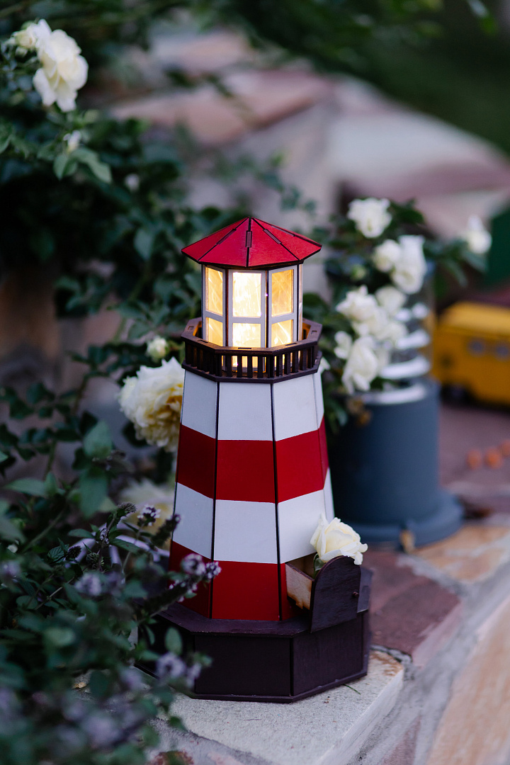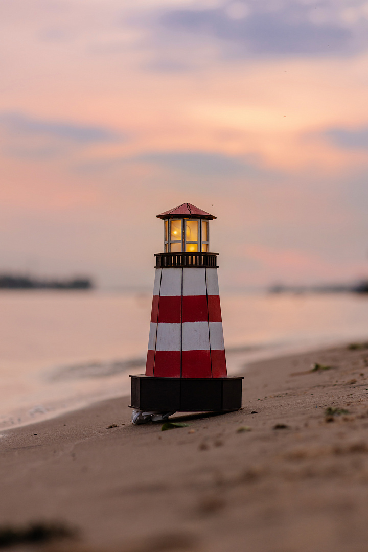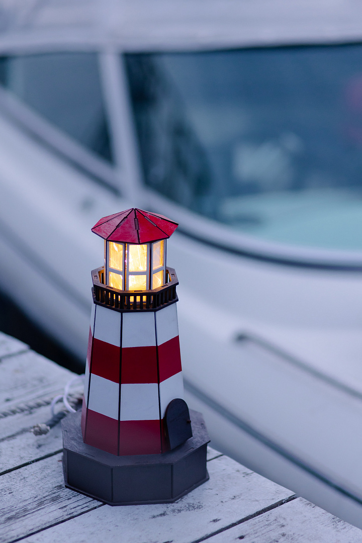 Такой маяк станет стильным украшением интерьера, будет создавать уют и особую домашнюю обстановку благодаря нежному свечению своей башенки. Каждый светильник выполнен из натурального дерева, дополнен красной ленточкой и небольшим выдвижным тайником, куда можно спрятать нечто сокровенное и дорогое сердцу…